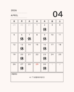 4月の休みはこんな感じです!