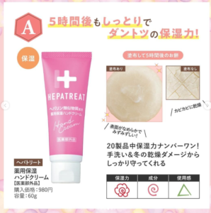 高評価だったヘパトリート薬用保湿ハンドクリームです!