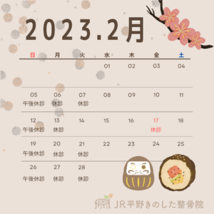 2月の休診日のお知らせ