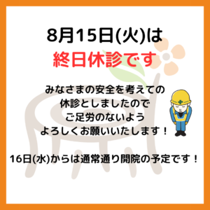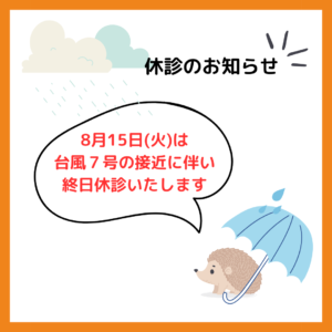 台風7号の接近に伴い8月15日(火)は終日休診にいたします☔️