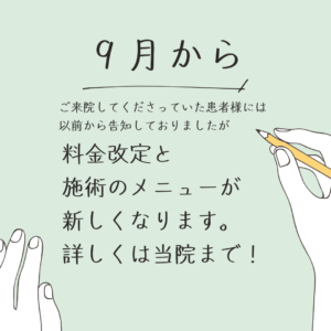 明日9/1より料金改定と施術メニューが新しくなります!